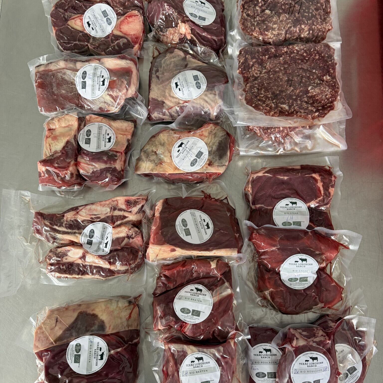 Genusspaket: Gourmetfleisch vom Bio Texas Longhorn Rind